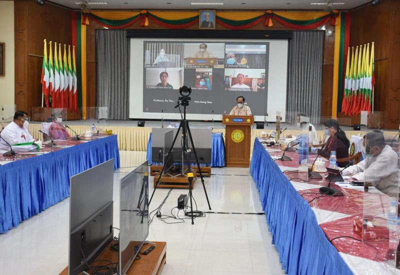 (၆၇) ကြိမ်မြောက် မြန်မာနိုင်ငံဆရာဝန်အသင်းညီလာခံ အကြို "COVID-19 နှင့် ပတ်သက် သော ပြည်သူ့ကျန်းမာကာကွယ်ရေးဆိုင်ရာများဆွေးနွေးပွဲ ("67th Myanmar Medical Conference Pre-Conference Symposium on COVID-19)" ကို ယနေ့ နံနက်ပိုင်းတွင် ကျန်းမာရေးနှင့်အားကစားဝန်ကြီးဌာန ၌ ဗီဒီယိုကွန်ဖရင့်စနစ်ဖြင့် ကျင်းပသည်။