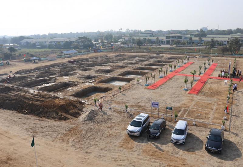 စိုက်ပျိုးရေးထွက်ကုန်ဆိုင်ရာ ဈေးကွက်ဗဟိုဌာန အဆောက်အဦပန္နက်တင် အခမ်းအနားကို ယနေ့နံနက် ၉ နာရီခွဲက နေပြည်တော်၊ ပုဗ္ဗသီရိမြို့နယ် ညစျေးအနီးရှိ သတ်မှတ်မြေနေရာတွင် ကိုဗစ်-၁၉ ကာကွယ်ရေး လမ်းညွှန်ချက်များနှင့်အညီ ကျင်းပသည်။