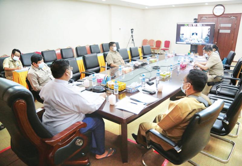 ကိုဗစ်-၁၉ ကာကွယ်ဆေး ရရှိလာနိုင်မှုအခြေအနေ အမျိုးအမျိုးအပေါ်မူတည်၍ စနစ်တကျခွဲဝေ ထိုးနှံနိုင်ရေး သဏ္ဍာန်တူစားပွဲတင်လေ့ကျင့် ကြိုတင်ပြင်ဆင်ခြင်း အခမ်းအနားကို ယမန်နေ့ ညနေပိုင်းက နေပြည်တော်ရှိ ကျန်းမာရေးနှင့်အားကစားဝန်ကြီးဌာန၌ ဗီဒီယိုကွန်ဖရင့်စနစ်ဖြင့် ကျင်းပသည်။