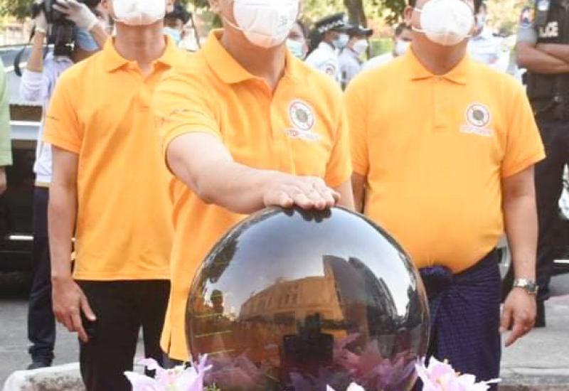 ရန်ကုန်အနောက်ပိုင်းခရိုင်၊ ကမာရွတ်မြို့နယ် အမှတ်(၂)ရပ်ကွက် ပြည်လမ်းအမှတ်(၆၁၅)ရှိ ကမ္ဘောဇဘဏ်ခွဲ(၁)ရှေ့တွင် ယနေ့ နံနက် ၈ နာရီ ၂၅ မိနစ်အချိန်တွင် ကျန်းမာရေး အသိပညာပေး Stop Covid အဝါရောင် Campaign ပညာပေး Billboard အား ဖဲကြိုးဖြတ်ဖွင့်လှစ်ခြင်း အခမ်းအနား ပြုလုပ်ခဲ့ရာ အခမ်းအနားသို့