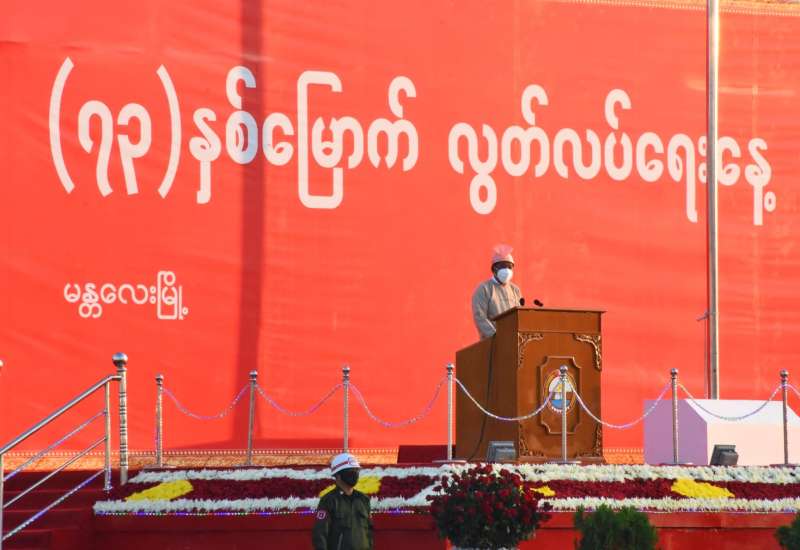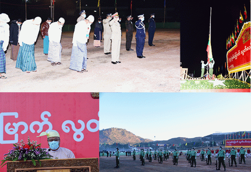 ၂၀၂၁ ခုနှစ် (၇၃) နှစ်မြောက် လွတ်လပ်ရေးနေ့ အလံတင်အခမ်းအနားနှင့် နိုင်ငံ တော်အလံ အလေးပြုခြင်း အခမ်းအနားကို ယနေ့ နံနက်ပိုင်းတွင် ရန်ကုန်မြို့ မဟာဗန္ဓုလ ပန်းခြံရှိ လွတ်လပ်ရေး ကျောက်တိုင်ရှေ့၌ ကိုဗစ်-၁၉ ကာကွယ်၊ ထိန်းချုပ်၊ကုသရေး၊ အမျိုး သားအဆင့် ဗဟိုကော်မတီနှင့် ကျန်းမာရေးနှင့် အားကစား ဝန်ကြီးဌာနတို့က ထုတ်ပြန်ထား သည့်ညွှန်ကြားချက်များနှင့်အညီ ကျင်းပသည်။