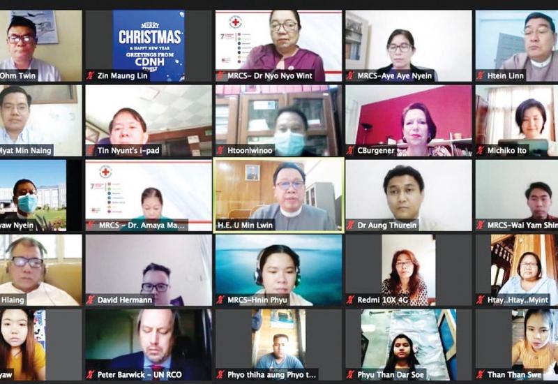 ရခိုင်ပြည်နယ်အတွင်းရှိ မြို့နယ်များမှ လူငယ်များ၊ အမျိုးသမီးများအတွက် ဦးတည်၍ ဆောင်ရွက်လျက်ရှိ သော ‘အားလုံးအတွက်ရှေးဦးပြုစုခြင်း’ ‘ First Aid for All’ သင်တန်းစီမံချက် ပထမအဆင့်သင်တန်းဆင်းပွဲအခမ်း အနားကို Online ဖြင့် ယနေ့ ကျင်းပရာ နိုင်ငံတော် အတိုင်ပင်ခံရုံးဝန်ကြီးဌာန ဒုတိယဝန်ကြီး ဦးမင်းလွင် က သင်တန်းဆင်းအမှာစကား ပြောကြားသည်။