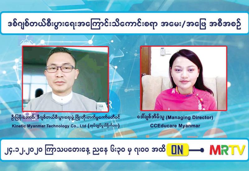 ကိုဗစ် - ၁၉ ရောဂါဖြစ်ပွားမှု ကာလအတွင်း စီးပွားရေးလုပ်ငန်းများ ပြန်လည် လုပ်ကိုင် လည်ပတ်နိုင်ရန် ရည်ရွယ်ချက်ဖြင့် ပြည်သူကို အသိပညာမျှဝေပေး မည့် “ဒစ်ဂျစ်တယ်စီးပွားရေးအကြောင်း သိကောင်းစရာ အမေး/အဖြေ အစီအစဉ်” ကို နိုဝင်ဘာ ၂၅ ရက်မှစ၍ အပတ်စဉ် ဗုဒ္ဓဟူးနှင့် ကြာသပတေးနေ့ များတွင် ညနေ ၆ နာရီခွဲမှ ည ၇ နာရီအထိ မြန်မာ့အသံနှင့် ရုပ်မြင်သံကြားမှ ထုတ်လွှင့်ပြသလျက်ရှိသည်။