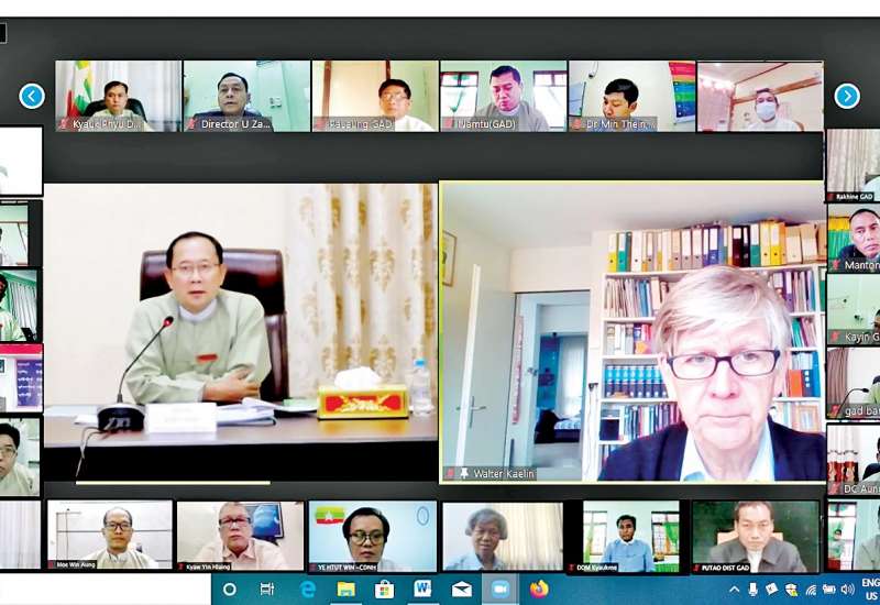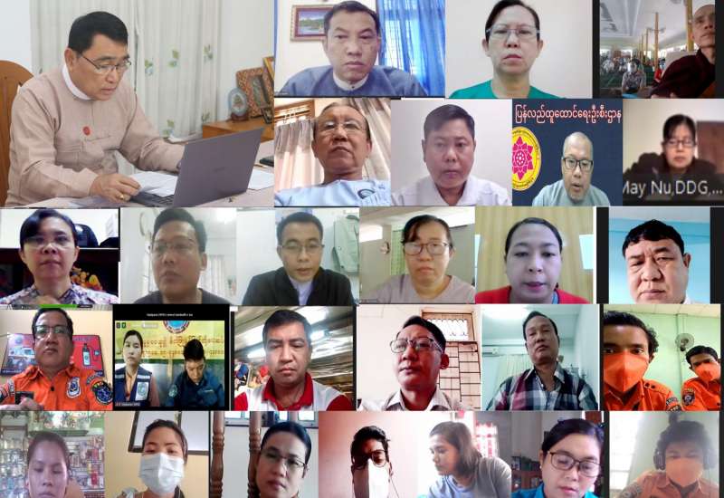 ကိုဗစ်-၁၉ ကာကွယ်ထိန်းချုပ်ကုသရေးလုပ်ငန်းစဉ်များတွင် ပါ၀င်ကြမည့် စေတနာ့ ၀န်ထမ်းများကို ဆင့်ပွား သင်တန်း ပေးခြင်းနှင့် အားပေးစကား ပြောကြားခြင်း အစီစဉ်ကိုယနေ့နံ နက်ပိုင်းတွင် Online စနစ်ဖြင့် ကျင်းပ သည်။
