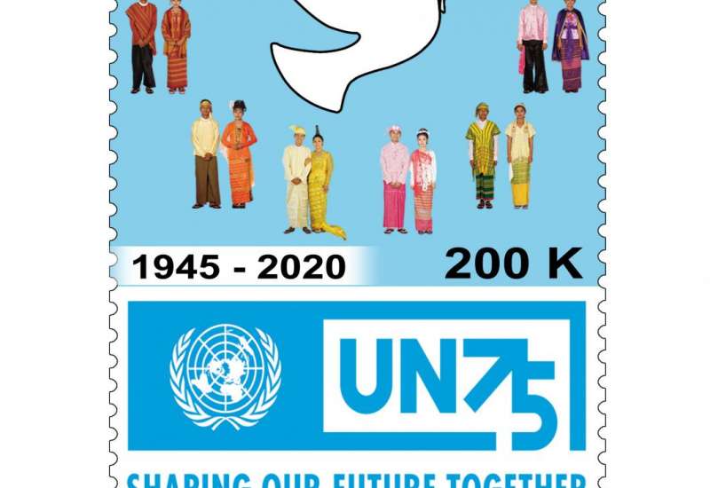 ကုလသမဂ္ဂဖွဲ့စည်းတည်ထောင်သည့် (၇၅) နှစ်ပြည့် အထိမ်းအမှတ်အနေဖြင့် နိုင်ငံခြားရေး ဝန်ကြီးဌာန အစီအစဉ်ဖြင့် (UN75) Logo ပါ အထူးထုတ် စာပို့တံဆိပ်ခေါင်းသစ် (၂၀၀ ကျပ်တန်) (၁) မျိုးအား ပို့ဆောင်ရေးနှင့်ဆက်သွယ်ရေးဝန်ကြီးဌာန၊ မြန်မာ့စာတိုက် လုပ်ငန်းမှ ဒီဇင်ဘာ (၁) ရက်၊ မြန်မာသက္ကရာဇ် ၁၃၈၂ ခုနှစ်၊ တန်ဆောင်းမုန်းလပြည့်ကျော် (၂) ရက် (အင်္ဂါနေ့)၊ နံနက် ၉ နာရီခွဲမှစတင်၍ နေပြည်တော်ဗဟိုစာတိုက်ကြီး၊ ရန်ကုန်စာတိုက်ကြီး၊ မန္တလေးစာတိုက်ကြီးတို့နှင့် တိုင်းဒေသကြီး/ ပြည်နယ်များရှိ စာတိုက်များတွင် ရောင်းချပေးသွားမည်ဖြစ်သည်။
