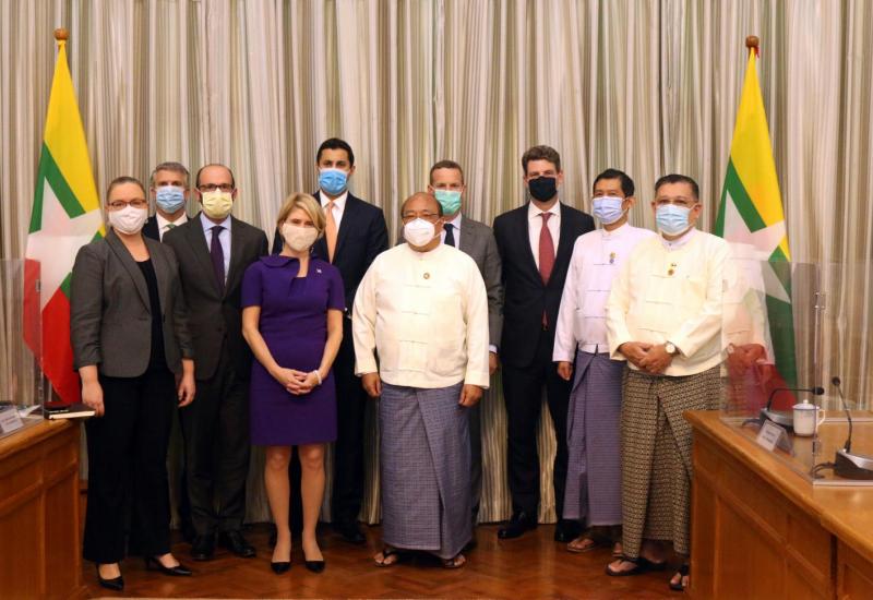 ရင်းနှီးမြှုပ်နှံမှုနှင့် နိုင်ငံခြားစီးပွားဆက်သွယ်ရေးဝန်ကြီးဌာန ပြည်ထောင်စုဝန်ကြီး ဦးသောင်းထွန်းသည် အမေရိကန် နိုင်ငံတကာဖွံ့ဖြိုးမှု ဘဏ္ဍာရေးကော်ပိုရေးရှင်း (ဒီအက်ဖ်စီ)၏ အမှုဆောင်အရာရှိချုပ် အက်ဒမ်ဘိုးလား ဦးဆောင်သော အမေရိကန် အစိုးရ ကိုယ်စားလှယ်အဖွဲ့ကို ယနေ့နံနက် ၁၁ နာရီတွင် ရင်းနှီးမြှုပ်နှံမှုနှင့် နိုင်ငံခြား စီးပွားဆက်သွယ်ရေးဝန်ကြီးဌာန၌ လက်ခံတွေ့ဆုံသည်။