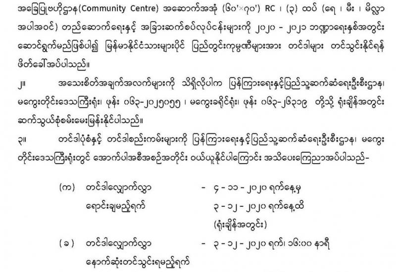 ၂၀၂၀ပြည့်နှစ်၊ နိုဝင်ဘာလ(၈)ရက်နေ့တွင် ကျင်းပပြုလုပ်မည့် ပါတီစုံဒီမိုကရေစီ အထွေထွေရွေး ကောက်ပွဲ၌ မဲရုံအသီးသီးတာဝန်ထမ်းဆောင်ကြမည့် မဲရုံးမှူး၊ ဒုတိယမဲရုံမှူးနှင့် မဲရုံအဖွဲ့ဝင်များအားရွေး ကောက်ပွဲဆိုင်ရာ အသိပညာပေးသင်တန်းကို ရန်ကုန်တိုင်းဒေသကြီး၊ဒဂုံမြို့နယ်အမှတ်(၁) အခြေခံပညာ အထက်တန်းကျောင်း၌ ယမန်နေ့နံနက်၁၀နာရီက ဖွင့်လှစ် ပို့ချပေးကြောင်းသိရသည်။