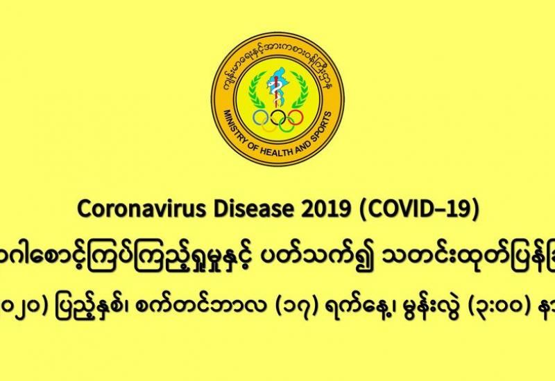 ၁။ (၁၆-၉-၂၀၂၀) ရက်နေ့၊ ည (၈:၀၀)နာရီ မှ (၁၇-၉-၂၀၂၀) နံနက် (၈:၀၀)နာရီ အတွင်း COVID-19 ဓာတ်ခွဲ စစ်ဆေးချက်များအရ -