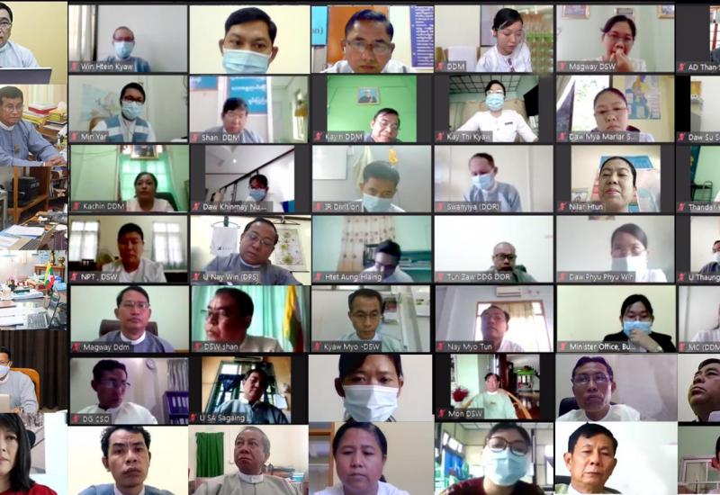 လူမှုဝန်ထမ်း၊ ကယ်ဆယ်ရေးနှင့် ပြန်လည်နေရာချထားရေးဝန်ကြီးဌာန၏ Monitoring and Evaluation Framework အတွက် Indicator များ ဖော်ထုတ်ဆွေးနွေးနိုင်ရေး အလုပ်ရုံ ဆွေးနွေးပွဲကို ယနေ့ နံနက်ပိုင်းက Virtual Workshop အနေဖြင့် ကျင်းပသည်။