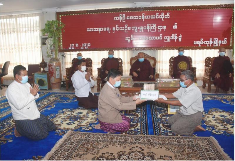 သာသနာရေးနှင့် ယဉ်ကျေးမှုဝန်ကြီးဌာနက ရန်ကုန်မြို့ မရမ်းကုန်းမြို့နယ်ရှိ ဇောတိကာရုံ ပရိယတ္တိစာသင်တိုက်နှင့် ကန်ဦးဇေတဝန် ပရိယတ္တိစာသင်တိုက်၊ ရန်ကင်းမြို့နယ်ရှိ ပဉ္စနိကာယ သာသနာ့ဗိမာန် ပရိယတ္တိစာသင်တိုက်များသို့ ယနေ့တွင် ဝါဆိုသင်္ကန်း၊ လှူဖွယ်ပစ္စည်းများနှင့် ဆွမ်းပဒေသာပင်များ လှူဒါန်းသည်။