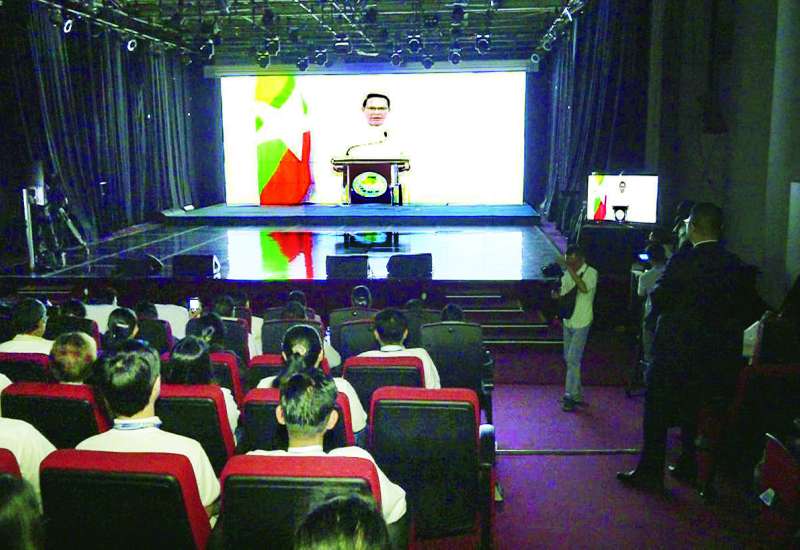 ပြန်ကြားရေးဝန်ကြီးဌာန မြန်မာ့အသံနှင့်ရုပ်မြင်သံကြား၊ မြန်မာနိုင်ငံဆိုင်ရာ တရုတ်သံရုံးနှင့် China Media Group (CMG) တို့ ပူးပေါင်းစီစဉ်ကျင်းပသည့် “လန်ချန်း-မဲခေါင် ပူးပေါင်းဆောင်ရွက်ရေးဆိုင်ရာ အောင်မြင်မှုများမျှဝေခြင်းနှင့် မှတ်တမ်းရုပ်ရှင်ပြသခြင်း” အခမ်းအနားကို မတ် ၁၃ ရက် နံနက်ပိုင်းက မြန်မာ့အသံနှင့်ရုပ်မြင်သံကြား (ရန်ကုန်) Studio A ၌ကျင်းပရာ မြန်မာနိုင်ငံဆိုင်ရာ တရုတ်သံရုံး သံမှူးကြီး Dr.Zheng Zhihong၊ မြန်မာ့အသံနှင့်ရုပ်မြင်သံကြားမှ တာဝန်ရှိသူများနှင့် ဖိတ်ကြားထားသည့် ဧည့်သည်တော်များ တက်ရောက်ကြသည်။