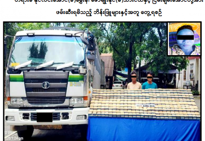 လုံခြုံရေးတပ်ဖွဲ့ဝင်များပါဝင်သော ပူးပေါင်းအဖွဲ့သည် ဇွန်လ ၂၈ ရက်နေ့ ညနေ ၅ နာရီအချိန် သတင်းအရ ကလေးမြို့နယ်၊ အေးသာယာကျေးရွာအနီးတွင် မန္တလေးမှကလေးသို့ နိုင်လင်းအောင် (ခ) မွှေးနီ မောင်းနှင်ပြီး ဇော်မျိုးနိုင် (ခ) သားငယ် လိုက်ပါလာသည့် MDY-14 8I/xxxx I ZONE အမျိုးအစား ၁၂ ဘီး မော်တော်ယာဉ်ပေါ်မှ ဘိန်းဖြူ ၂၆ ဒသမ ၄ ကီလို (၎င်းဒေသကာလ တန်ဖိုးငွေကျပ် ၁ ဒသမ ၃၂ ဘီလီယံ) အား ဖမ်းဆီးရမိပြီး ကွင်းဆက်ဖော်ထုတ်ချက်အရ ဖမ်းဆီးရမိဘိန်းဖြူများအား မန္တလေးတိုင်းမှ ကလေးသို့ သယ်ဆောင်ခိုင်းသူမှာ ပြည်ကြီးတံခွန်မြို့နယ်နေ ငြိမ်းချမ်းအောင်ဖြစ်ကြောင်း သိရှိရသဖြင့် ၎င်းတို့အား ဥပဒေအရအရေးယူထားရှိပြီး ကွင်းဆက်ပြစ်မှုကျူးလွန်သူများအား ဆက်လက်ဖော်ထုတ်လျက်ရှိကြောင်း မြန်မာနိုင်ငံရဲတပ်ဖွဲ့မှ သတင်းရရှိသည်။