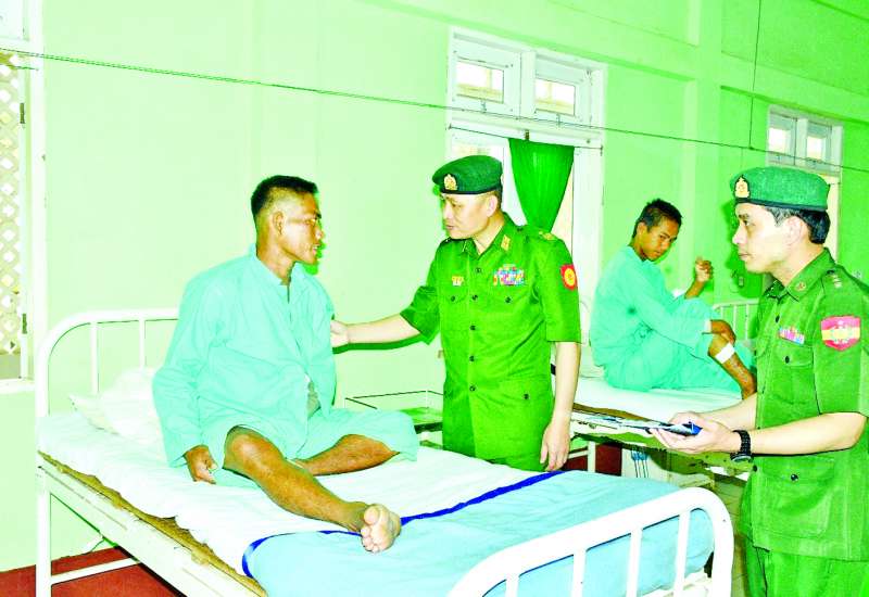 ကချင်ပြည်နယ် မြစ်ကြီးနားမြို့ရှိ တပ်မတော်ဆေးရုံ၊ ရှမ်းပြည်နယ် (တောင်ပိုင်း) နမ့်စန်မြို့ရှိ တပ်မတော်ဆေးရုံ၊ ရန်ကုန်တိုင်းဒေသကြီး မင်္ဂလာဒုံမြို့နယ်ရှိ တပ်မတော်အရိုးရောဂါအထူးကုဆေးရုံကြီး (ခုတင်-၅၀၀) နှင့် တပ်မတော်ဆေးရုံကြီး (ခုတင်-၁၀၀၀)၊ မကွေးတိုင်းဒေသကြီး မကွေးမြို့ရှိ တပ်မတော်ဆေးရုံတို့၌ တက်ရောက်ဆေးကုသမှုခံယူလျက်ရှိသော အရာရှိ၊ စစ်သည်၊ မိသားစုများ၊ စစ်မှုထမ်းဟောင်းအဖွဲ့ဝင်များ၊ ပြည်သူ့စစ် (ဌာနေ) တပ်ဖွဲ့ဝင်များနှင့် ဒေသခံပြည်သူများအား ယနေ့တွင် သက်ဆိုင်ရာတိုင်းစစ်ဌာနချုပ်များမှ တိုင်းမှူးများနှင့် တာဝန်ရှိသူများက သွားရောက်ကြည့်ရှု၍ တစ်ဦးချင်း၏ ရောဂါဖြစ်ပွားမှု၊ ဆေးကုသပေးထားမှုနှင့် ကျန်းမာရေးတိုးတက်ကောင်းမွန်မှု အခြေအနေများကို ရင်းရင်းနှီးနှီး မေးမြန်းအားပေးစကားပြောကြားပြီး စားသောက်ဖွယ်ရာများ ပေးအပ်သည်။