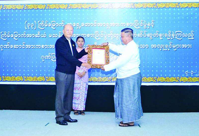(၃၃)ကြိမ်မြောက် အရှေ့တောင်အာရှအားကစားပြိုင်ပွဲနှင့် (၁၃)ကြိမ်မြောက် အာဆီယံမသန်စွမ်း အားကစားပြိုင်ပွဲတို့တွင် ဆုတံဆိပ်များဆွတ်ခူးရရှိခဲ့ကြသည့် နိုင်ငံ့ဂုဏ်ဆောင်အားကစားအဖွဲ့များအား ပံ့ပိုးကူညီဆောင်ရွက်ပေးခဲ့သည့် စေတနာရှင်အလှူရှင်များအား ဂုဏ်ပြုမှတ်တမ်းလွှာပေးအပ်ပွဲကို ယနေ့နံနက်ပိုင်းတွင် နေပြည်တော်အားကစားလေ့ကျင့်ရေးစခန်းရှိ ဘက်စုံသုံးခန်းမ၌ ကျင်းပသည်။