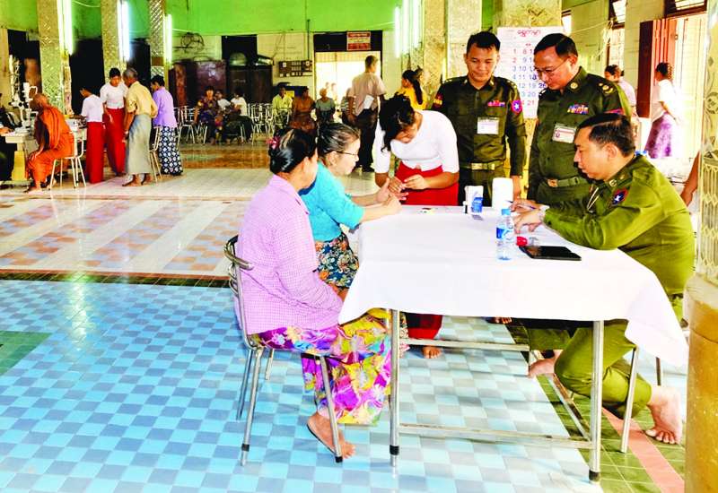 တပ်မတော်အနေဖြင့် ပြည်သူလူထု၏ ကျန်းမာရေးကဏ္ဍတိုးတက်မြင့်မားစေရန်အတွက် ကျန်းမာရေးစောင့်ရှောက်မှုလုပ်ငန်းများတွင် တစ်ဖက်တစ်လမ်းမှ ကူညီစောင့်ရှောက်မှုများ ဆောင်ရွက်ပေးလျက်ရှိရာ ယနေ့နံနက်ပိုင်းတွင် ရန်ကုန်တိုင်းစစ်ဌာနချုပ် နယ်လှည့်ဆေးကုသရေးအဖွဲ့က ရန်ကုန်တိုင်းဒေသကြီး မှော်ဘီမြို့နယ် ပတ်တန်းကျေးရွာနှင့် ပတ်ဝန်းကျင်ကျေးရွာများမှ သံဃာတော်များနှင့် ဒေသခံပြည်သူများအား အဆိုပါကျေးရွာရှိ တလိုင်းကုန်းကျောင်းတိုက်၌ အခြေပြု၍ ကျန်းမာရေးစောင့် ရှောက်မှုလုပ်ငန်းများ ဆောင်ရွက်ပေးသည်။