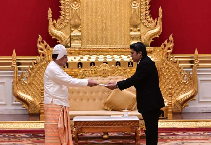 ပြည်ထောင်စုသမ္မတမြန်မာနိုင်ငံတော် ယာယီသမ္မတ နိုင်ငံတော်လုံခြုံရေးနှင့် အေးချမ်းသာယာရေးကော်မရှင်ဥက္ကဋ္ဌ ဗိုလ်ချုပ်မှူးကြီး မင်းအောင်လှိုင်ထံ မြန်မာနိုင်ငံဆိုင်ရာ ဆော်ဒီအာရေဗျနိုင်ငံ သံအမတ်ကြီး H.E. Mr. Maziad Mohammed M Al Howishan က ယနေ့နံနက် ၁၁ နာရီတွင် နေပြည်တော်ရှိ အမျိုးသားကာကွယ်ရေးနှင့်လုံခြုံရေးကောင်စီရုံး၊ သံတမန်ဆောင်ဧည့်ခန်းမ၌ ၎င်း၏သံအမတ်ခန့်အပ်လွှာကို ပေးအပ်သည်။