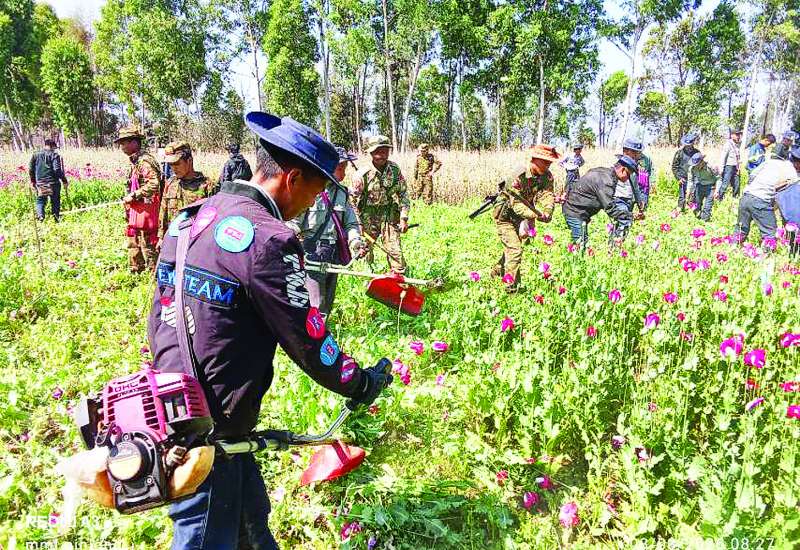 ရှမ်းပြည်နယ်အတွင်းရှိ မြို့နယ်အချို့၌ မတ် ၃ ရက်က သီးပွင့်ဆဲဘိန်းစိုက်ခင်း ၆၈ ဧကခန့်အား ဖျက်ဆီးရှင်းလင်းခဲ့ကြောင်း သိရသည်။
