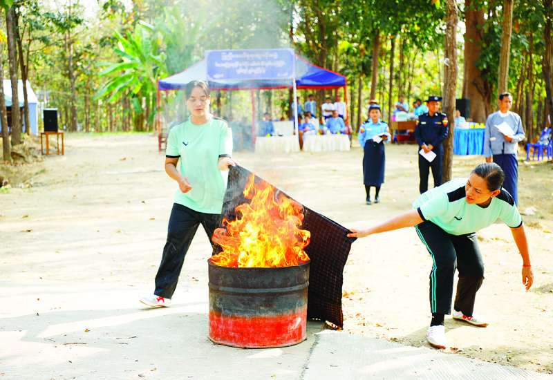 ပြည်ထောင်စု ရာထူးဝန်အဖွဲ့၏ မီးဘေးလုံခြုံရေးအတွက် အထောက်အကူပြုစေမည့် မီးဘေးလုံခြုံရေးဆိုင်ရာ မီးငြှိမ်းသတ်စက်နှင့် မီးသတ်ပစ္စည်းများကိုင်တွယ်အသုံးပြု၍ မီးသတ်ကျွမ်းကျင်မှုစွမ်းရည်ပြိုင်ပွဲကို ယနေ့မွန်းလွဲပိုင်းတွင် ပြည်ထောင်စုရာထူးဝန်အဖွဲ့ ရုံးအမှတ်(၁၇)၌ကျင်းပရာ ပြည်ထောင်စုရာထူးဝန်အဖွဲ့ဥက္ကဋ္ဌ ဦးစိုးမင်းဦး၊ အဖွဲ့ဝင်များဖြစ်သည့် ဦးဆန်းမြင့်၊ ဒေါ်ခင်မျိုးမြင့်၊ ဦးရဲနိုင်၊ ဦးစိုးတင့်၊ ဦးကျော်မျိုးထွဋ်၊ အမြဲတမ်းအတွင်းဝန်၊ ညွှန်ကြားရေးမှူးချုပ်များနှင့် တာဝန်ရှိသူများ တက်ရောက်ကြသည်။