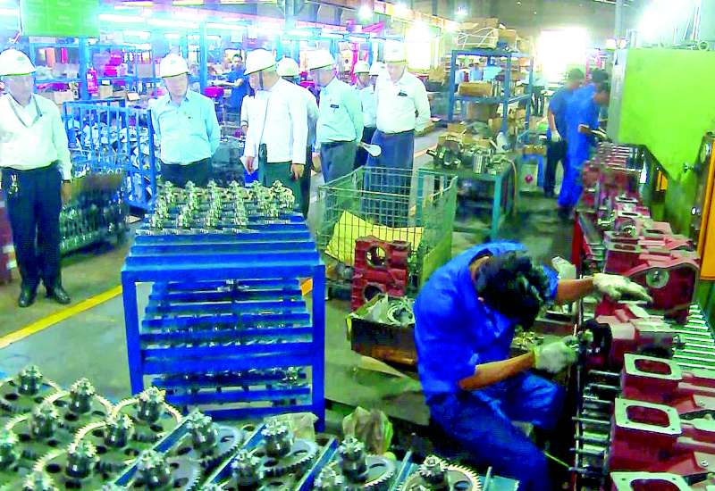 စိုက်ပျိုးရေး၊ မွေးမြူရေးနှင့်ဆည်မြောင်းဝန်ကြီးဌာန ဒုတိယဝန်ကြီး ဦးဗိုလ်ဗိုလ်ကျော်သည် တာဝန်ရှိသူများနှင့်အတူ ယမန်နေ့နံနက်ပိုင်းက ရန်ကုန်တိုင်းဒေသကြီး ဒဂုံမြို့သစ်(တောင်ပိုင်း)မြို့နယ် ရွာသာကြီးရှိ Good Brother’s Co.,Ltd. လယ်ယာသုံး စက်ကိရိယာထုတ်လုပ်ရေးစက်ရုံကို ကြည့်ရှုစစ်ဆေးသည်။