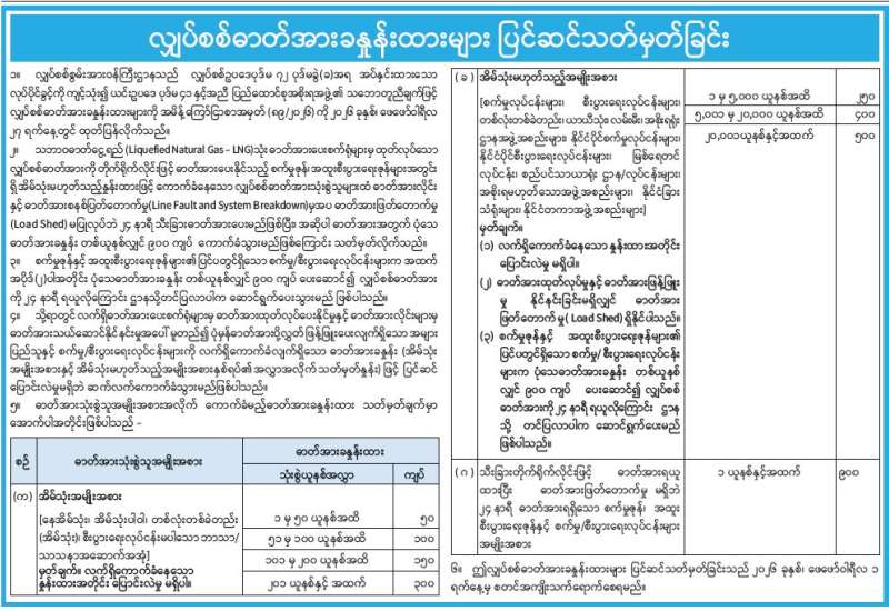 လျှပ်စစ်ဓာတ်အားခနှုန်းထားများ ပြင်ဆင်သတ်မှတ်ခြင်း