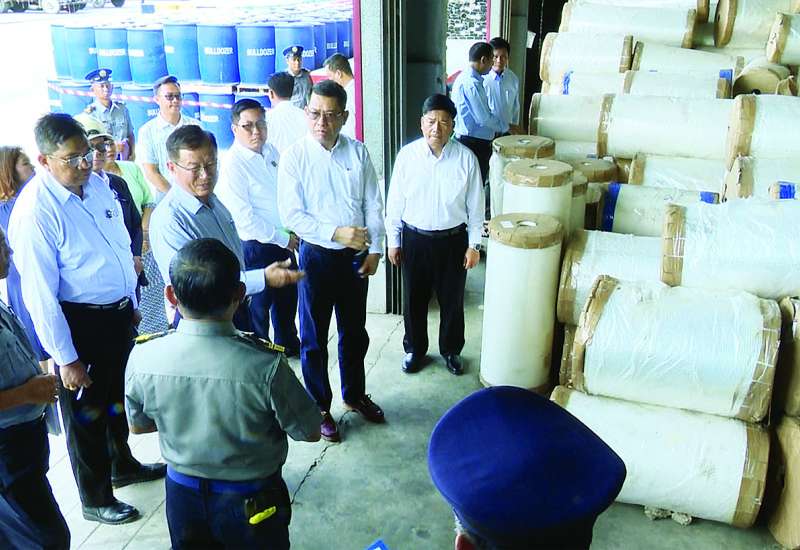 ကုန်သွယ်မှုနှင့် ကုန်စည်စီးဆင်းမှုများ မှန်ကန်မြန်ဆန်စေရေးလုပ်ငန်းကော်မတီဥက္ကဋ္ဌ၊ စီးပွားရေးနှင့်ကူးသန်းရောင်းဝယ်ရေးဝန်ကြီးဌာန ဒုတိယဝန်ကြီး ဦးမင်းမင်း၊ ဘဏ္ဍာရေးနှင့်အခွန်ဝန်ကြီးဌာန ဒုတိယဝန်ကြီး ဦးဟန်ဝင်းအောင်တို့သည် ယနေ့တွင် ရန်ကုန်အပြည်ပြည်ဆိုင်ရာဆိပ်ကမ်းများနှင့် ယာယီ အပြည်ပြည်ဆိုင်ရာဆိပ်ကမ်းများသို့ ဆိုက်ကပ်ရောက်ရှိလာသော ရန်ကုန် - ရနောင်း နယ်စပ်ကုန်သွယ်မှု အထွေထွေကုန်ပစ္စည်းတင် ကုန်တင်သင်္ဘောများ၏ ဆိပ်ကမ်းများသို့ ဆိုက်ကပ်ဝင်ရောက်မှု၊ ကုန်စည်များ ရှင်းလင်းထုတ်ယူနေမှုအခြေအနေများကို ကွင်းဆင်းကြည့်ရှုစစ်ဆေးသည်။