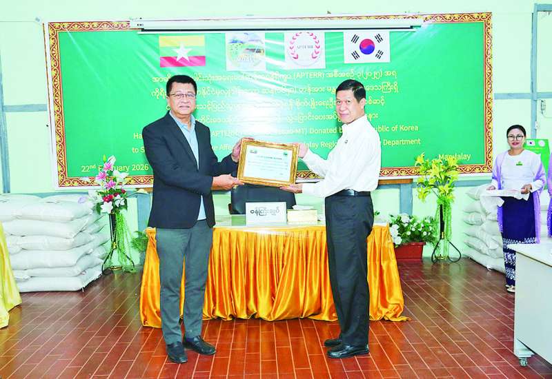 အာဆီယံအပေါင်းသုံး အရေးပေါ်ဆန်ရိက္ခာ (APTERR) အစီအစဉ်-၃ (၂၀၂၅) အရ ကိုရီးယားသမ္မတနိုင်ငံမှ လှူဒါန်းသော ဆန်တန်ချိန် ၁၆၂၀ ကို မန္တလေးတိုင်းဒေသကြီး စိုက်ပျိုးရေးဦးစီးဌာနမှတစ်ဆင့် မန္တလေးတိုင်းဒေသကြီးအစိုးရအဖွဲ့ထံသို့ လွှဲပြောင်းပေးအပ်ပွဲအခမ်းအနားကို ယနေ့မွန်းလွဲပိုင်းက ချမ်းမြသာစည်မြို့နယ်ရှိ တိုင်းဒေသကြီး စိုက်ပျိုးရေးဦးစီးဌာန၌ ကျင်းပသည်။