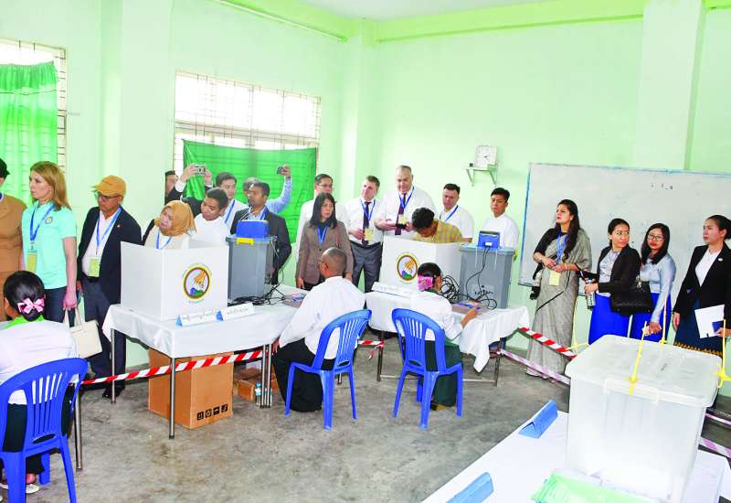 နိုင်ငံတကာရွေးကောက်ပွဲစောင့်ကြည့်လေ့လာရေးအဖွဲ့များနှင့် ပြည်တွင်းအခြေစိုက် နိုင်ငံတကာသံရုံးများမှ သံတမန်များ၊ တာဝန်ရှိသူများသည် ယနေ့တွင် ပါတီစုံဒီမိုကရေစီအထွေထွေရွေးကောက်ပွဲ အပိုင်း (၃) ကျင်းပနေသည့် ရန်ကုန်မြို့ရှိ မဲရုံများသို့ သွားရောက်၍ မဲရုံမှူးများ၊ တာဝန်ရှိသူများ၊ မဲဆန္ဒရှင်ပြည်သူများနှင့် တွေ့ဆုံကာ ရွေးကောက်ပွဲနှင့် စပ်လျဉ်း၍ ဆွေးနွေးလေ့လာစောင့်ကြည့်မှုများ ပြုလုပ်ကြသည်။