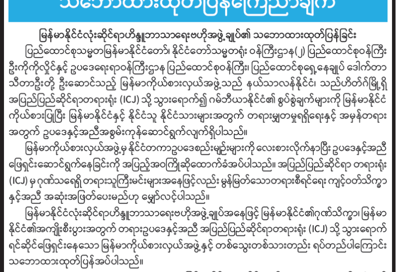 မြန်မာနိုင်ငံလုံးဆိုင်ရာဟိန္ဒူဘာသာရေးဗဟိုအဖွဲ့ချုပ်၏ သဘောထားထုတ်ပြန်ခြင်း