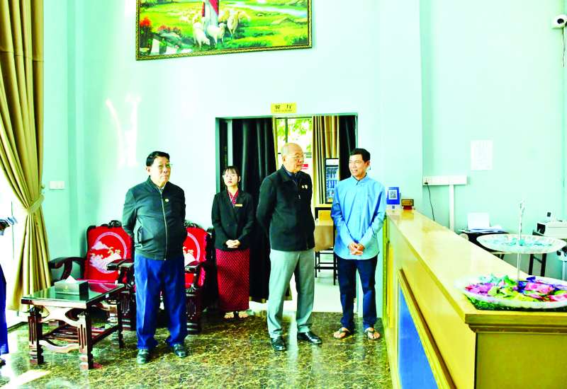 အားကစားနှင့် လူငယ်ရေးရာဝန်ကြီးဌာနနှင့် ဟိုတယ်နှင့်ခရီးသွားလာရေးဝန်ကြီးဌာန ပြည်ထောင်စုဝန်ကြီး Jeng Phang နော်တောင်သည် ကချင်ပြည်နယ် စီးပွားရေးရာဝန်ကြီး ဦးမျိုးဆွေ၊ ဟိုတယ်နှင့် ခရီးသွားလာရေးညွှန်ကြားမှုဦးစီးဌာန တာဝန်ရှိသူများနှင့်အတူ ယနေ့တွင် မြစ်ကြီးနားမြို့ Shwe Hee Hotel နှင့် Jade Garden Hotel သို့ သွားရောက်ကြည့်ရှုစစ်ဆေးသည်။