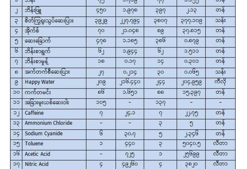 ရန်ကုန်မြို့နှင့် မန္တလေးမြို့အတွက် ရည်ညွှန်းလက်ကားဈေးနှုန်းများနှင့် ပြည်ထောင်စုနယ်မြေ နေပြည်တော်၊ တိုင်းဒေသကြီး/ပြည်နယ် မြို့တော်များအတွက် ရည်ညွှန်းလက်လီဈေးနှုန်းများ