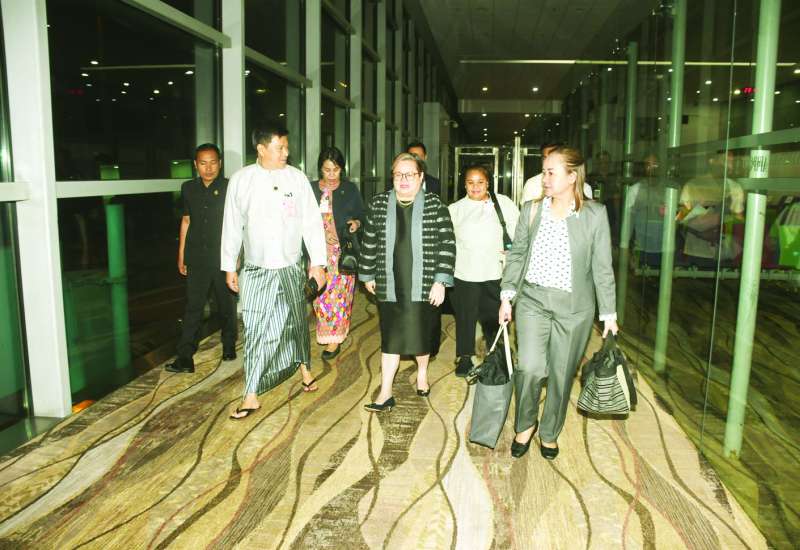 အာဆီယံဥက္ကဋ္ဌ၏ မြန်မာနိုင်ငံ ဆိုင်ရာ အထူးကိုယ်စားလှယ် ဖိလစ်ပိုင်နိုင်ငံခြားရေးဝန်ကြီး H.E. Ms. Maria Theresa Parreno Lazaro ဦးဆောင်သည့် ကိုယ်စားလှယ်အဖွဲ့သည် ယမန်နေ့ ည ၁၁ နာရီ ၁၀ မိနစ်တွင် လေကြောင်းခရီးဖြင့် ရန်ကုန်မြို့သို့ရောက်ရှိသည်။
