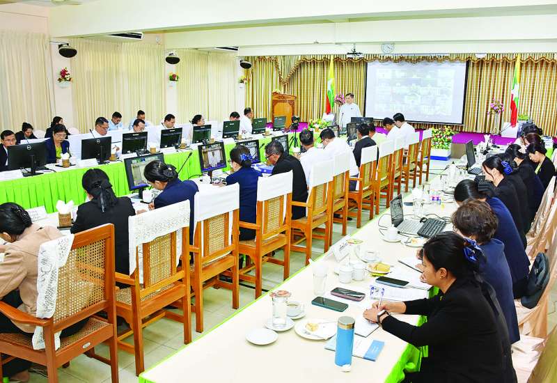 သိပ္ပံနှင့်နည်းပညာဝန်ကြီးဌာန၏ နှစ်အလိုက်စွမ်းဆောင်ရည် ပြန်လည်သုံးသပ်ခြင်းဆိုင်ရာအလုပ်ရုံဆွေးနွေးပွဲကို ယနေ့နံနက်ပိုင်းတွင် နေပြည်တော် သိပ္ပံနှင့်နည်းပညာဝန်ကြီးဌာန စုဝေးခန်းမ၌ Hybrid စနစ်ဖြင့် ကျင်းပသည်။