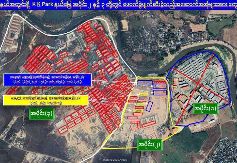 မြန်မာနိုင်ငံအစိုးရအနေဖြင့် အွန်လိုင်းလိမ်လည်လောင်းကစားမှုများ အများဆုံးအခြေချလုပ်ကိုင်လျက်ရှိကြသည့် ရွှေကုက္ကိုလ်နယ်မြေနှင့် KK Park နယ်မြေများရှိ တရားမဝင်အဆောက်အအုံများအတွင်း ဝင်ရောက်ရှင်းလင်း၍ အွန်လိုင်းလိမ်လည်လောင်းကစားမှုလုပ်ငန်းစဉ်များတွင် အသုံးပြုခဲ့သည့် သိမ်းဆည်းရမိပစ္စည်းများအား စနစ်တကျဖျက်ဆီးခြင်းနှင့် တရားမဝင်အဆောက်အအုံများအား စနစ်တကျဖြိုချဖျက်ဆီးခြင်းများကို အဖွဲ့စုံပါဝင်သည့် ပူးပေါင်းအဖွဲ့ဖြင့် ဆောင်ရွက်လျက်ရှိရာ ယနေ့တွင်လည်း KK Park နယ်မြေအတွင်းရှိ တရားမဝင်အဆောက်အအုံ ၂၆ လုံးကို ထပ်မံဖြိုချဖျက်ဆီးခဲ့ကြောင်း သိရှိရသည်။