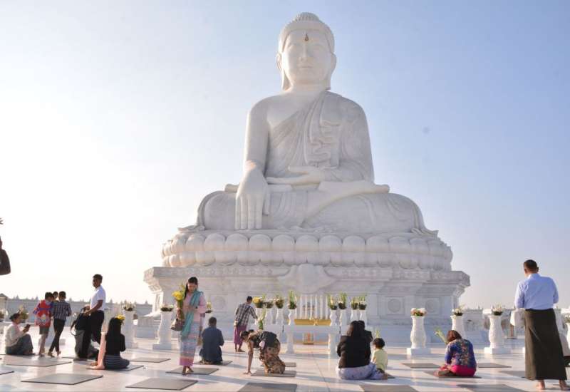 တပ်မတော်စွမ်းရည်သတ္တိဆိုင်ရာ ဂုဏ်ထူးဆောင်တံဆိပ်ချီးမြှင့်အပ်နှင်းခြင်းခံရသော အရာရှိ၊ စစ်သည်များနှင့် အမွေခံမိသားစုဝင်များသည် ယနေ့နံနက်ပိုင်းတွင် ပြည်ထောင်စုနယ်မြေ၊ နေပြည်တော်၊ ဒက္ခိဏသီရိမြို့နယ်ရှိ ဗုဒ္ဓဥယျာဉ်ဝတ္ထုကံတော်တွင် တည်ထားပူဇော်သည့် ကမ္ဘာပေါ်ရှိထိုင်တော်မူ ကျောက်ဆစ်ဗုဒ္ဓရုပ်ပွားတော်များအနက် ဉာဏ်တော်အမြင့်ဆုံးဖြစ်သည့် မာရဝိဇယဗုဒ္ဓရုပ်ပွားတော်မြတ်ကြီးအား ဖူးမြော်ကြည်ညိုကြပြီး ဘုရားရင်ပြင်တော်ပတ်လည်၌ စကျင်ကျောက်များအသုံးပြု၍ တည်ဆောက်ထားသည့် ဂန္ဓကုဋိတိုက်များအတွင်း ကြည့်ရှုလေ့လာကြသည်။