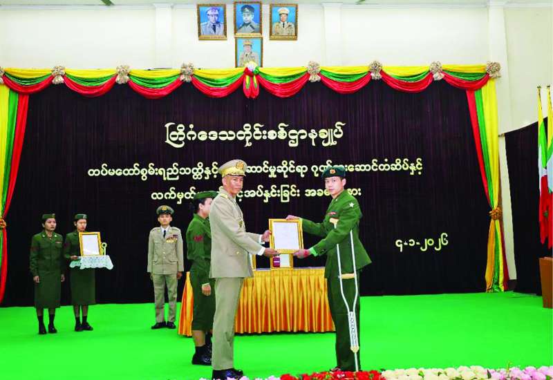 တပ်မတော်စွမ်းရည်သတ္တိဆိုင်ရာ ဂုဏ်ထူးဆောင်ဘွဲ့တံဆိပ်နှင့် လက်မှတ်များပေးအပ်ချီးမြှင့်ခြင်းအခမ်းအနားများကို ယနေ့မွန်းလွဲပိုင်းတွင် တိုင်းစစ်ဌာနချုပ် အသီးသီး၌ကျင်းပပြုလုပ်ကြရာ သက်ဆိုင်ရာတိုင်းစစ်ဌာနချုပ်များမှ တိုင်းမှူးများ၊ တပ်မတော်အရာရှိကြီးများ၊ အရာရှိ၊ စစ်သည်၊ မိသားစုများ၊ ဂုဏ်ထူးဆောင် ဘွဲ့တံဆိပ်ချီးမြှင့်ခြင်းခံရသူများနှင့် မိဘဆွေမျိုးများ၊ ဖိတ်ကြားထားသူများ တက်ရောက်ကြသည်။