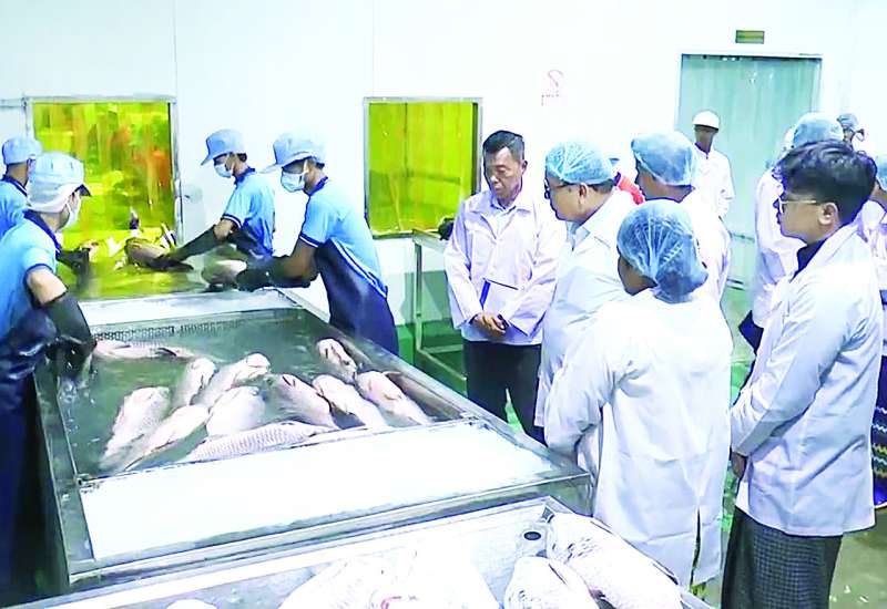 စိုက်ပျိုးရေး၊ မွေးမြူရေးနှင့် ဆည်မြောင်းဝန်ကြီးဌာန ဒုတိယဝန်ကြီး ဒေါက်တာအောင်ကြီးသည် ယမန်နေ့ မွန်းလွဲပိုင်းက ရန်ကုန်တိုင်းဒေသကြီး ဒဂုံမြို့သစ် (ဆိပ်ကမ်း) မြို့နယ်ရှိ L&Z Marine Food Products LTD (အအေးခန်းစက်ရုံ) သို့ ရောက်ရှိရာ စက်ရုံတာဝန်ရှိသူက တစ်နေ့လျှင် အအေးခဲထုတ်လုပ်နိုင်မှုပမာဏ ၂၅ တန်ရှိပြီး တန် ၁၅၀၀ ဆံ့ သိုလှောင်အအေးခန်းဖြင့် လုပ်ငန်း ဆောင်ရွက်နေမှုအခြေအနေ၊ စက်ရုံမှ အရည်အသွေးမြင့်ထုတ်ကုန်များကို သန့်ရှင်းစွာဖြင့် ထုတ်လုပ်နိုင်ရန်အတွက် ငါးလုပ်ငန်းဦးစီးဌာနမှ ဖွင့်လှစ်ထားသည့် သင်တန်းများ တက်ရောက် စေခြင်း၊ ညွှန်ကြားထားသည့် စည်းမျဉ်း စည်းကမ်းချက်များနှင့်အညီ ကုန်ထုတ်လုပ်မှု၊ သိုလှောင်မှု၊ တင်ပို့မှုလုပ်ငန်းစဉ်များ ဆောင်ရွက်လျက်ရှိပြီး စက်ရုံအနေဖြင့် EU၊ Saudi နိုင်ငံများသို့ တင်ပို့ရရှိမှုအတွက် ခွင့်ပြုချက် ရရှိထားပြီဖြစ်၍ ရေချိုငါး၊ ရေငန်ငါးမျိုးများအား အများဆုံးတင်ပို့ လျက်ရှိပါကြောင်းနှင့် နှစ်အလိုက် တင်ပို့မှု တန်ချိန်များအား ရှင်းလင်းတင်ပြရာ ဒုတိယဝန်ကြီးက လိုအပ်သည်များ မှာကြားသည်။