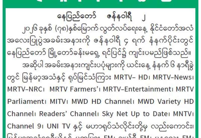 (၇၈) နှစ်မြောက် လွတ်လပ်ရေးနေ့ နိုင်ငံတော်အလံ အလေးပြုပွဲအခမ်းအနား ကျင်းပမှု တိုက်ရိုက်ထုတ်လွှင့်မည်