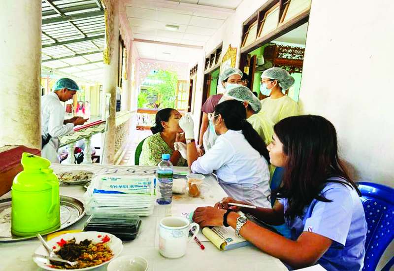 ကျန်းမာရေးဝန်ကြီးဌာန၏ ကြီးကြပ်မှု၊ ဧရာဝတီတိုင်းဒေသကြီးအစိုးရအဖွဲ့၏ ပံ့ပိုးကူညီမှုတို့ဖြင့် ပြည်သူများ၏ လူမှုကျန်းမာရေးကို စောင့်ရှောက်မြှင့်တင်ရန် ရည်ရွယ်၍ သွားဘက်ဆိုင်ရာ ဆေးတက္ကသိုလ် (ရန်ကုန်) မှ ကာကွယ်ရေးနှင့် လူထုသွားကျန်းမာရေးပညာဌာန၏ သင်ရိုးညွှန်းတမ်းနှင့်အညီ စတုတ္ထနှစ် ဘီဒီအက်စ် (၁/၂၀၂၅) သင်တန်းအောင်မြင်ပြီး ကျောင်းသား ကျောင်းသူ ၆၈ ဦးနှင့် အုပ်ချုပ်သူ ဆရာ ဆရာမများ ၁၈ ဦး စုစုပေါင်း ၈၆ ဦးတို့သည် ဒီဇင်ဘာ ၂၂ ရက်မှ ၂၅ ရက်အထိ ဧရာဝတီတိုင်းဒေသကြီး ဟင်္သာတခရိုင်ရှိ ကျေးရွာများနှင့် ရပ်ကွက်များတွင် သွားနှင့်ခံတွင်းကုသမှုများ၊ ပညာပေးဟောပြောမှုများနှင့် စစ်တမ်းကောက်ယူခြင်းကို ဆောင်ရွက်သည်။