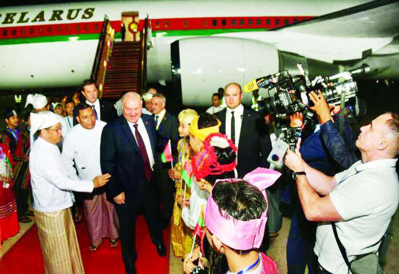 ပြည်ထောင်စုသမ္မတမြန်မာနိုင်ငံတော် ယာယီသမ္မတ နိုင်ငံတော်လုံခြုံရေးနှင့်အေးချမ်းသာယာရေးကော်မရှင်ဥက္ကဋ္ဌ ဗိုလ်ချုပ်မှူးကြီးမင်းအောင်လှိုင်၏ ဖိတ်ကြားချက်အရ မြန်မာနိုင်ငံသို့ တရားဝင်ချစ်ကြည်ရေးခရီးလာရောက်သည့် ဘယ်လာရုစ်သမ္မတနိုင်ငံ သမ္မတ H.E. Mr. Alexander Gregory-evich Lukashenko ဦးဆောင်သော အဆင့်မြင့်ကိုယ်စားလှယ်အဖွဲ့လိုက်ပါလာသော အထူးလေယာဉ်သည် ယနေ့ညပိုင်းတွင် မြန်မာနိုင်ငံလေပိုင်နက်အတွင်းသို့ စတင်ဖြတ်သန်းဝင်ရောက်လာရာ မြန်မာ့တပ်မတော်(လေ)မှ စတုတ္ထမျိုးဆက်လွန် Su-30 SME ဘက်စုံသုံး အကြီးစားဂျက်တိုက်လေယာဉ်သုံးစင်းက လိုက်ပါခြံရံပျံသန်းကြိုဆိုခဲ့ပြီး နေပြည်တော် တပ်မတော်လေဆိပ်သို့ ရောက်ရှိဆင်းသက်သည်။