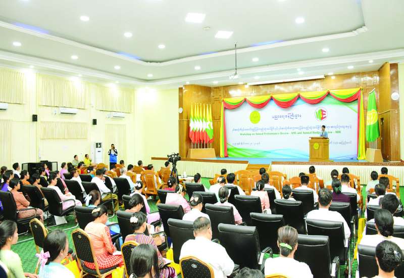 ပညာရေးဝန်ကြီးဌာန၏ နှစ်အလိုက်စွမ်းဆောင်ရည် ပြန်လည်သုံးသပ်ခြင်းနှင့် နှစ်အလိုက် ဘဏ္ဍာငွေပြန်လည်သုံးသပ်ခြင်း အလုပ်ရုံဆွေးနွေးပွဲကို ယမန်နေ့က နေပြည်တော်ရှိ ပညာရေးဝန်ကြီးဌာန အစည်းအဝေးခန်းမ၌ ကျင်းပရာ ပြည်ထောင်စုဝန်ကြီး ဒေါက်တာချောချောစိန်၊ ဒုတိယဝန်ကြီး ဒေါက်တာဇော်မြင့်နှင့် ဦးနေမျိုးလှိုင်၊ ညွှန်ကြားရေးမှူးချုပ်များ၊ ဒုတိယအမြဲတမ်းအတွင်းဝန်များ၊ ဒုတိယညွှန်ကြားရေးမှူးချုပ်များနှင့် တာဝန်ရှိသူများ တက်ရောက်ကြသည်။