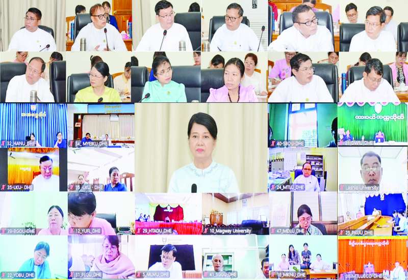 အင်္ဂလိပ်စာစွမ်းရည်မြင့်မားစေရေး တွေ့ဆုံဆွေးနွေးပွဲကို ယနေ့ညနေပိုင်းတွင် နေပြည်တော်ရှိ ပညာရေးဝန်ကြီးဌာန ရုံးအမှတ်(၁၃) အစည်းအဝေးခန်းမ၌ကျင်းပရာ ပညာရေးဝန်ကြီးဌာန ပြည်ထောင်စုဝန်ကြီး ဒေါက်တာချောချောစိန်၊ ဒုတိယဝန်ကြီး ဦးနေမျိုးလှိုင်၊ ညွှန်ကြားရေးမှူးချုပ်များ၊ အင်္ဂလိပ်စာ ဆရာ ဆရာမများနှင့် တာဝန်ရှိသူများတက်ရောက်ကြပြီး တက္ကသိုလ်များမှ ပါမောက္ခချုပ်များ၊ အင်္ဂလိပ်စာဌာနပါမောက္ခ(ဌာနမှူး)များက အွန်လိုင်းဖြင့် တက်ရောက်ကြသည်။