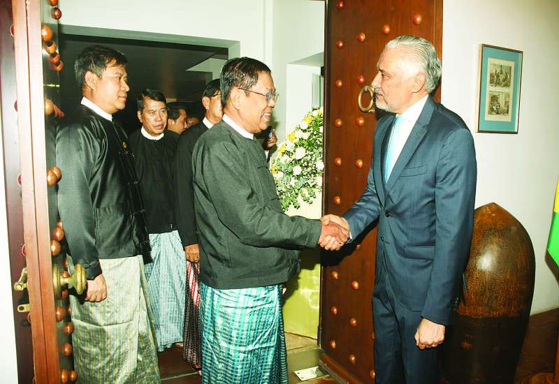 နိုင်ငံခြားရေးဝန်ကြီးဌာန ပြည်ထောင်စုဝန်ကြီး ဦးသန်းဆွေသည် မြန်မာနိုင်ငံဆိုင်ရာ အိန္ဒိယသံအမတ်ကြီး H.E. Mr. Abhay Thakur အား ယနေ့နံနက် ၈ နာရီခွဲတွင် ရန်ကုန်မြို့ရှိ ပန်းဝါဧည့်ရိပ်သာ၌ လက်ခံတွေ့ဆုံသည်။
