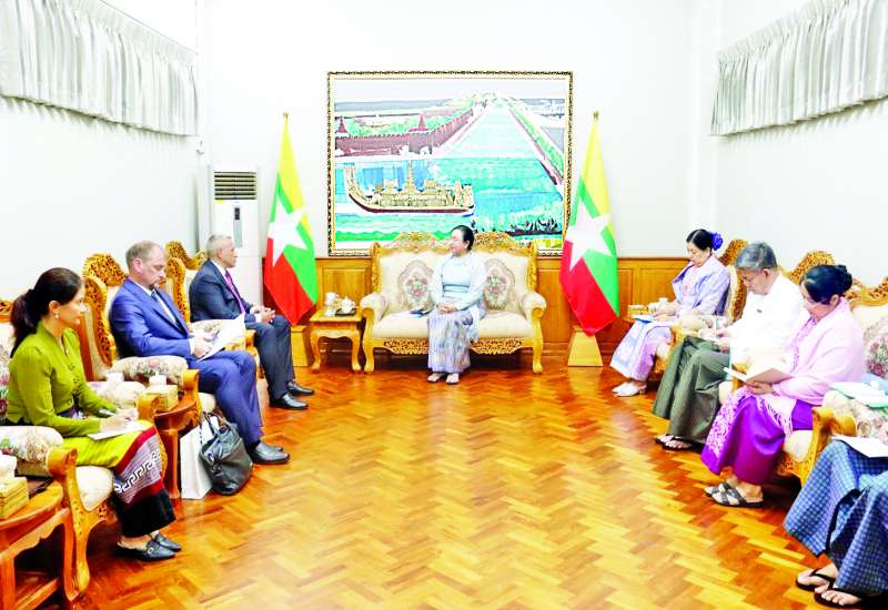 ရင်းနှီးမြှုပ်နှံမှုနှင့်နိုင်ငံခြားစီးပွားဆက်သွယ်ရေးဝန်ကြီးဌာန ပြည်ထောင်စုဝန်ကြီး ဒေါက်တာဝါဝါမောင်သည် ဟနွိုင်းမြို့အခြေစိုက် ဘယ်လာရုစ်သံရုံးမှ သံအမတ်ကြီး H.E. Mr. Uladzimir Baravikou ဦးဆောင်သော ကိုယ်စားလှယ်အဖွဲ့အား ယနေ့မွန်းလွဲပိုင်းတွင် နေပြည်တော်ရှိ ရင်းနှီးမြှုပ်နှံမှုနှင့်နိုင်ငံခြားစီးပွားဆက်သွယ်ရေးဝန်ကြီးဌာန၌ လက်ခံတွေ့ဆုံသည်။