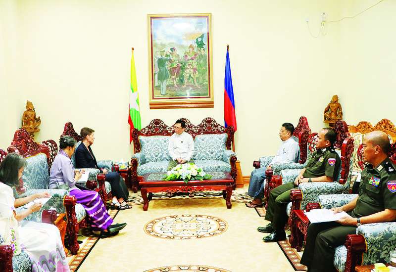 လူဝင်မှုကြီးကြပ်ရေးနှင့်ပြည်သူ့အင်အားဝန်ကြီးဌာန ပြည်ထောင်စုဝန်ကြီး ဦးမြင့်ကြိုင်သည် မြန်မာနိုင်ငံဆိုင်ရာ ကုလသမဂ္ဂယာယီဌာနေညှိနှိုင်းရေးမှူးနှင့် လူသားချင်းစာနာထောက်ထားမှုဆိုင်ရာ ယာယီညှိနှိုင်းရေးမှူးဖြစ်သူ Ms. Gwyn Lewis နှင့်အဖွဲ့အား ယနေ့နံနက်ပိုင်းတွင် နေပြည်တော်ရှိ အဆိုပါဝန်ကြီးဌာန ပြည်ထောင်စုဝန်ကြီး၏ ဧည့်ခန်းမ၌ လက်ခံတွေ့ဆုံသည်။