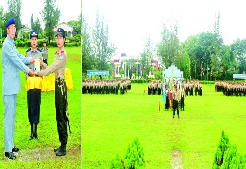 စာရေးဝန်ထမ်းသင်တန်းအမှတ်စဉ် (၂၁၅) ၏ သင်တန်းဆင်းဂုဏ်ပြု စစ်ရေးပြအခမ်းအနားကို ယနေ့နံနက်ပိုင်းတွင် ရန်ကုန်တိုင်းဒေသကြီး လှည်းကူးမြို့နယ် နိုင်ငံ့ဝန်ထမ်းတက္ကသိုလ် (အောက်မြန်မာပြည်) ရှိ စစ်ရေးပြ ကွင်း၌ ကျင်းပသည်။