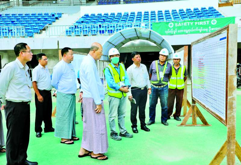အားကစားနှင့်လူငယ်ရေးရာဝန်ကြီးဌာန ဒုတိယဝန်ကြီး ဦးထိန်လင်း၊ မွန်ပြည်နယ် လူမှုရေးရာဝန်ကြီးနှင့် တာဝန်ရှိသူများသည် ယမန်နေ့နံနက်ပိုင်းက မော်လမြိုင်မြို့ ပြည်နယ်အားကစားဥယျာဉ်စီမံကိန်းတွင် ဆောက်လုပ်လျက်ရှိသော အားကစားရုံနှင့် ဘောလုံးကွင်း၊ အားကစားသမားအိပ်ဆောင်များ၊ စားရိပ်သာနှင့် ဝန်ထမ်းအိမ်ရာများကို ကြည့်ရှုစစ်ဆေးပြီး အားကစားဥယျာဉ်လုံခြုံရေးကိစ္စရပ်များ၊ အားကစားခန်းမအချိန်မီပြီးစီးနိုင်ရေးကိစ္စရပ်များ ဆွေးနွေးမှာကြားကာ ကားရပ်နားရန်နေရာနှင့် ရေကူးကန်ဆောက်လုပ်ရန် လျာထားနေရာတို့ကို ကြည့်ရှုစစ်ဆေးသည်။