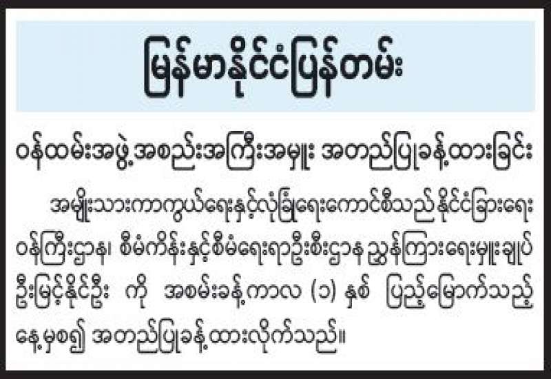 ဝန်ထမ်းအဖွဲ့အစည်းအကြီးအမှူး အတည်ပြုခန့်ထားခြင်း