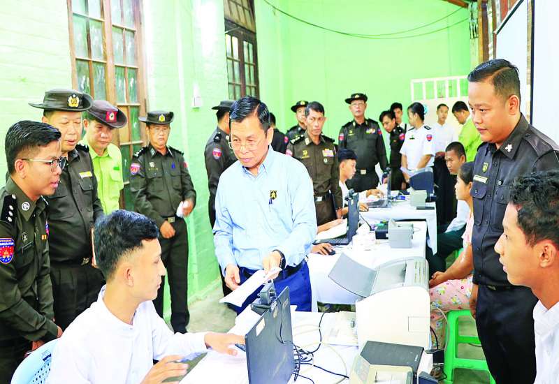 ဧရာဝတီတိုင်းဒေသကြီး ကျုံပျော်မြို့နယ်အတွင်းရှိ အိမ်ထောင်စုလူဦးရေစာရင်းနှင့် နိုင်ငံသားစိစစ်ရေးကတ် ပျက်စီး/ ပျောက်ဆုံးသွားသည့် ဒေသခံပြည်သူများနှင့် နိုင်ငံသားစိစစ်ရေးကတ် မရရှိသေးသူများအား မြို့နယ်ဦးစီးမှူးရုံး၌ ဝန်ထမ်းများက ပန်းခင်းစီမံချက်အဆင့် (၃) ဖြင့် ဆောင်ရွက်ပေးနေမှုကို ယနေ့နံနက်ပိုင်းက လူဝင်မှုကြီးကြပ်ရေးနှင့် ပြည်သူ့အင်အားဝန်ကြီးဌာန ပြည်ထောင်စုဝန်ကြီး ဦးမြင့်ကြိုင်သည် တာဝန်ရှိသူများနှင့်အတူ သွားရောက်ကြည့်ရှုအားပေးသည်။