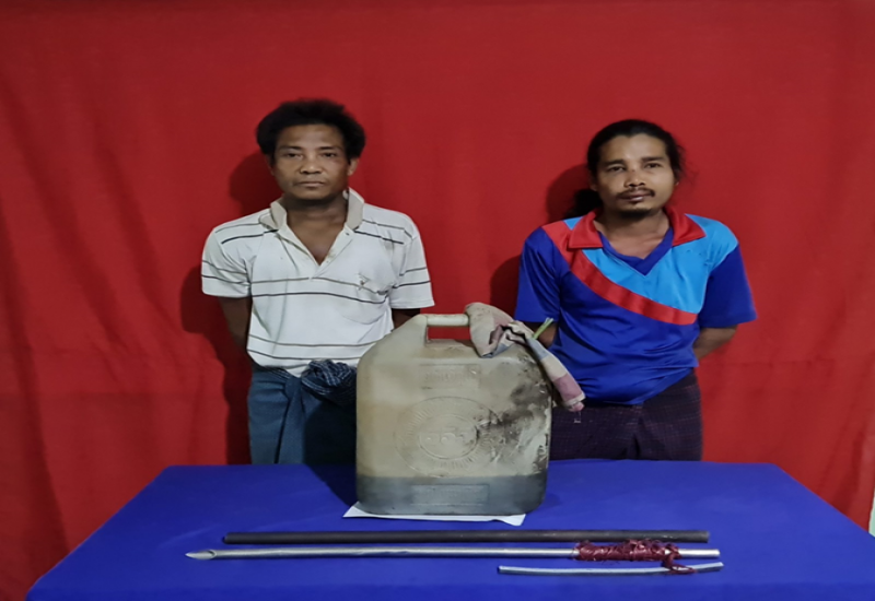 ပဲခူးတိုင်းဒေသကြီး၊ လက်ပံတန်းမြို့နယ်၊ ကျွန်းကလေးကျေးရွာအုပ်စု၊ အနောက်စု ရပ်ကွက်နေ ချောကိုကိုထွန်း၊ အသက်(၂၆)နှစ်၊ မဝင်းဝင်းမော်၊ အသက်(၃၀)နှစ်တို့သည် ၎င်းတို့ ၏ နေအိမ်၌ ဆူပူအကြမ်းဖက်လုပ်ရပ်များဆောင်ရွက်ရန်အတွက် ဒေသန္တရလက်လုပ်မီးခိုးမိုင်း များပြုလုပ်လျက်ရှိကြောင်း တည်ငြိမ်အေးချမ်းမှုကို လိုလားသည့် တာဝန်သိပြည်သူများ၏ သတင်းပေးချက်အရ လုံခြုံရေးတပ်ဖွဲ့ဝင်များက မတ် ၁၅ ရက် ည ၇ နာရီခန့်တွင် သွားရောက် စစ်ဆေးရှာဖွေခြင်းများပြုလုပ်ရာ မဝင်းဝင်းမော်နှင့်အတူ ယမ်းစိမ်း ၁ ပိဿာ၊ ရောင်စုံဖယောင်း ခဲတံ ၄၈ ချောင်း၊ မီးခိုးမိုင်းပြုလုပ်ရာတွင် အသုံးပြုသည့် မတ်ခွက် ၂ ခွက်၊ ခဲပြားစက္ကူ ၁ လိတ်၊ ၂ ဒသမ ၅ လက်မခန့်ရှိ ဝါးလုံးထိပ်တွင် သံများ ကန့်လန့်ဖြတ်ရိုက်ထားသည့် သံဆူးတုတ် ၁၂ ချောင်း၊ သံတုတ် ၃ ချောင်းနှင့် မီးခိုးမိုင်း ပြုလုပ်ရာတွင် အသုံးပြုသည့် ဆက်စပ်ပစ္စည်း များနှင့်အတူ ဖမ်းဆီးရမိခဲ့ပြီး ချောကိုကိုထွန်းမှာ ထွက်ပြေးလွတ်မြောက်သွားခဲ့ကြောင်း သိရှိ ရသည်။