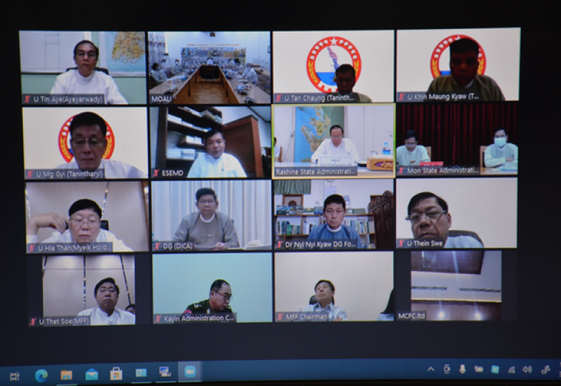 မြန်မာနိုင်ငံ၏ ရေလုပ်ငန်းဖွံ့ဖြိုးတိုးတက်ရေး အတွက် Fish Processing စီးပွားရေး ဇုန်များကို နယ်စပ်တွင် ထူထောင်နိုင်ရေး လုပ်ငန်းညှိနှိုင်းအစည်းအဝေးကို ယနေ့ နံနက်ပိုင်း က စိုက်ပျိုးရေး၊ မွေးမြူရေးနှင့် ဆည်မြောင်းဝန်ကြီးဌာန အစည်းအဝေးခန်းမ၌ ကိုဗစ်-၁၉ ကျန်းမာရေးဆိုင်ရာ ညွှန်ကြားချက်များနှင့်အညီ ကျင်းပသည်။